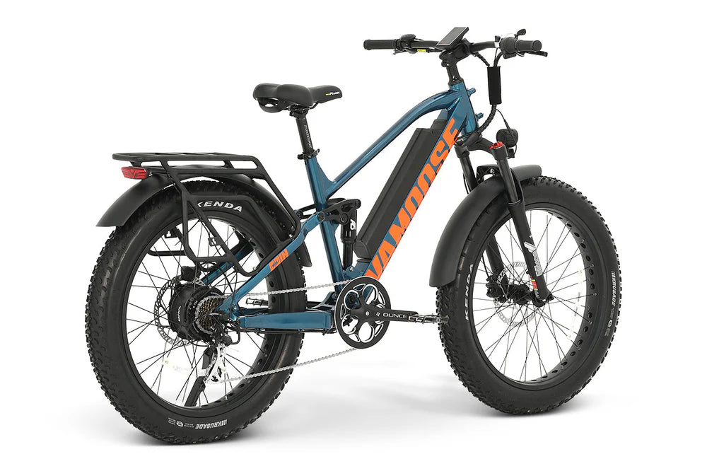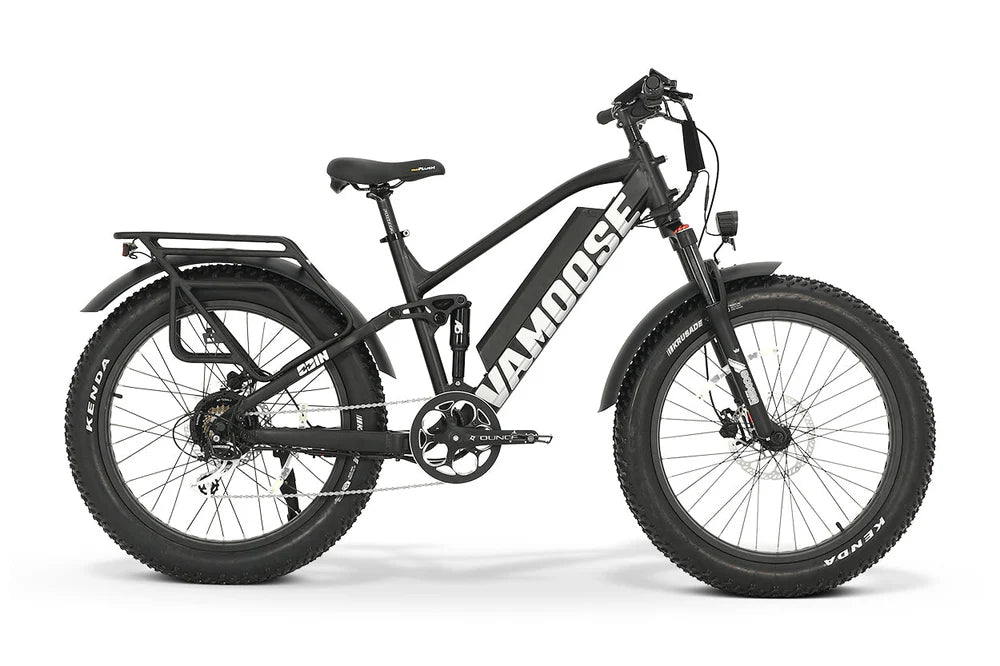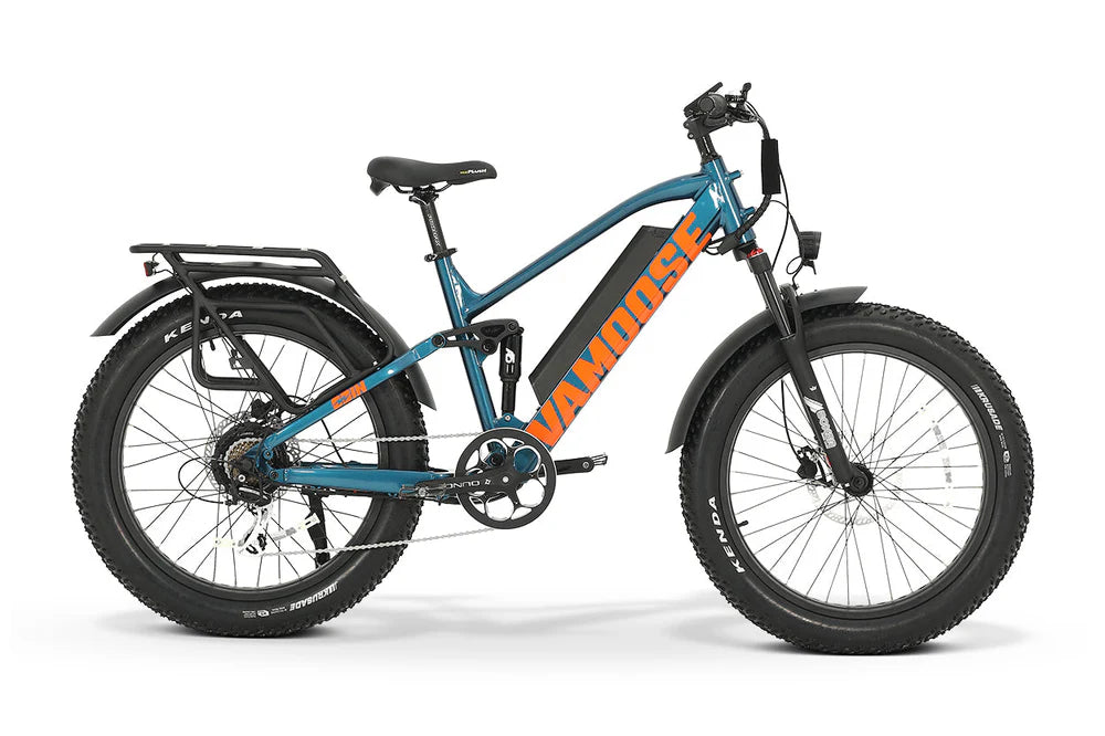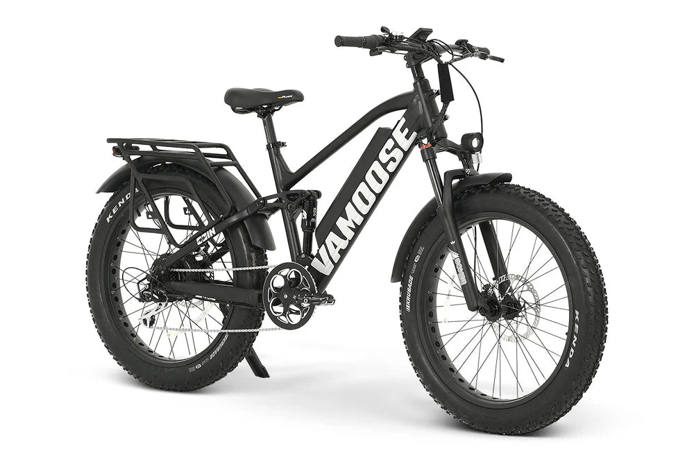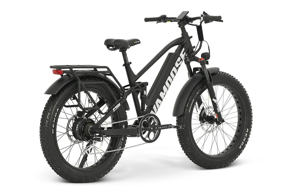 A full suspension, 48V 500W mountain crusher, the Vamoose ODIN V mountain bike brings enjoyment to trails full of bumps and chatter - with an added rear rack!
