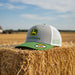 This cap features a John Deere logo and comes in heather gray, green, and white.