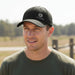 Black cotton twill; Embroidered logo in silver on left front panel; Extra thick bill - a difference you can feel! Adjustable plastic snap closure; John Deere stock certificate logo screen printed on inside front; 6 panel construction for a low profile fit