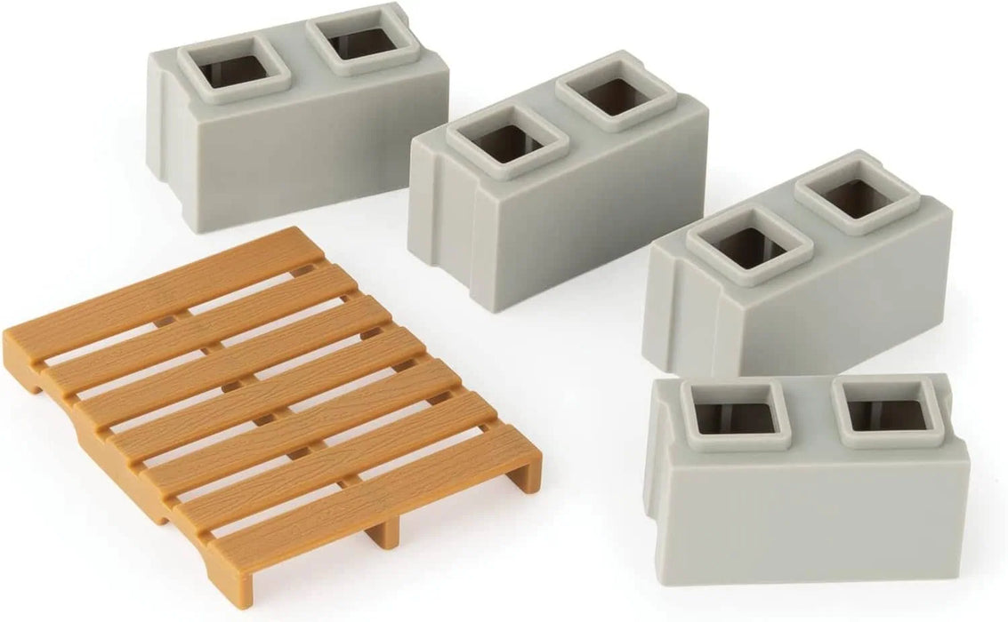 - Forks allow the wooden pallet and four cement blocks to be loaded and unloaded