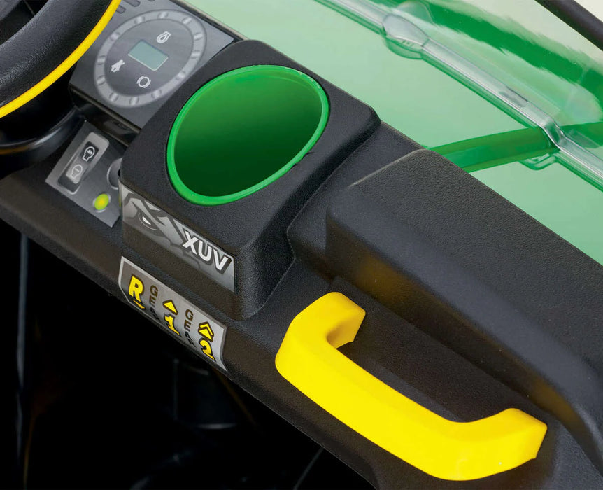 Experience the thrill of a real Gator with this John Deere XUV 550 Gator ride-on toy that zooms in two speeds and backs up with ease! It grips any terrain with traction wheels while they cruise in comfort on the large adjustable seat. Even includes built-in cup holders for their favorite drinks!